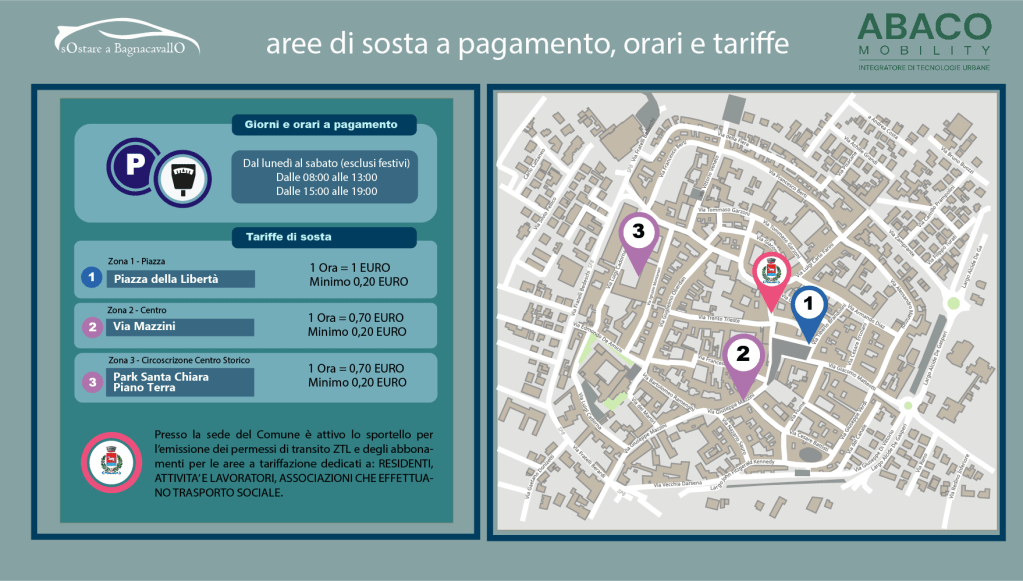 I parcometri di Bagnacavallo sono stati aggiornati da Input nel mese di Agosto del 2021, gestiti oggi da ABACO S.p.A.